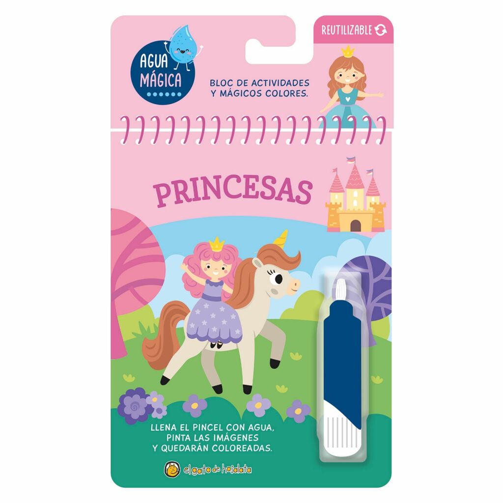 ¡A jugar con agua mágica! En esta colección podrás darle color a mágicas princesas,divertirte en el maravilloso mundo de los unicornios,pasear por la granja y remontarte a la época de losdinosaurios. Solo deberás llenar el pincel con agua y loscolores aparecerán ¡por arte de magia!